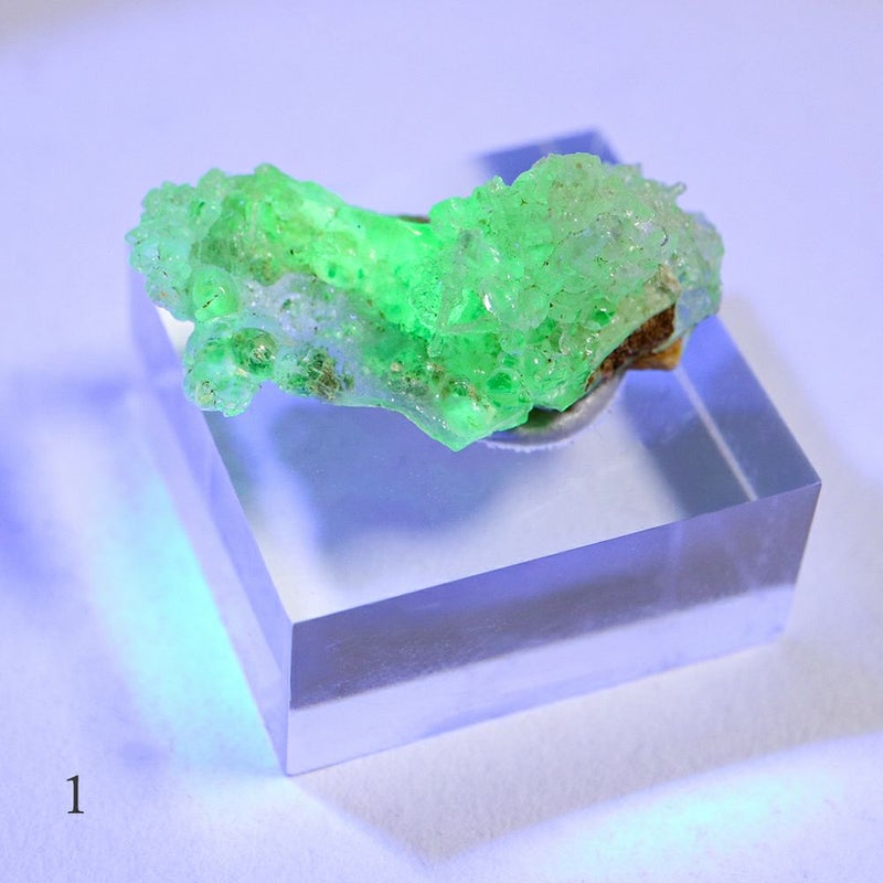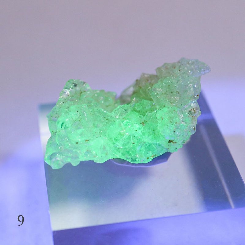 一見地味にも見える石ですが、UVライトを当てると黄緑色に蛍光します。
