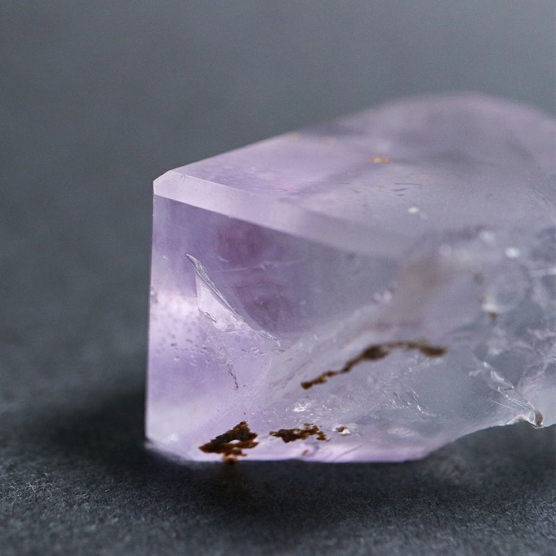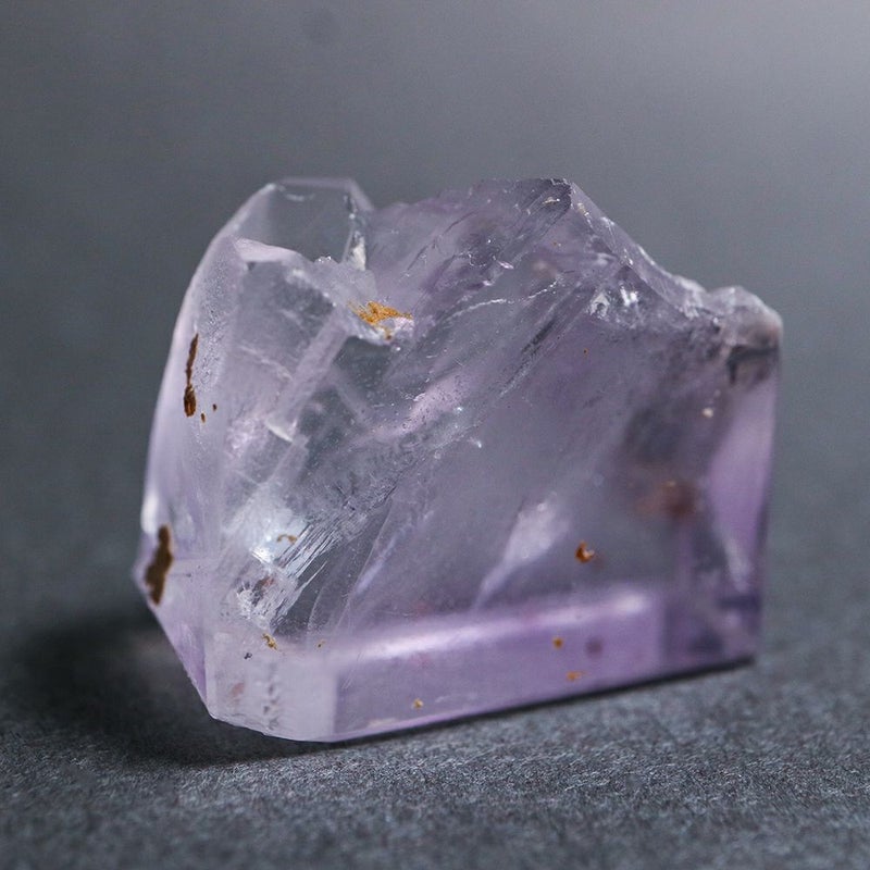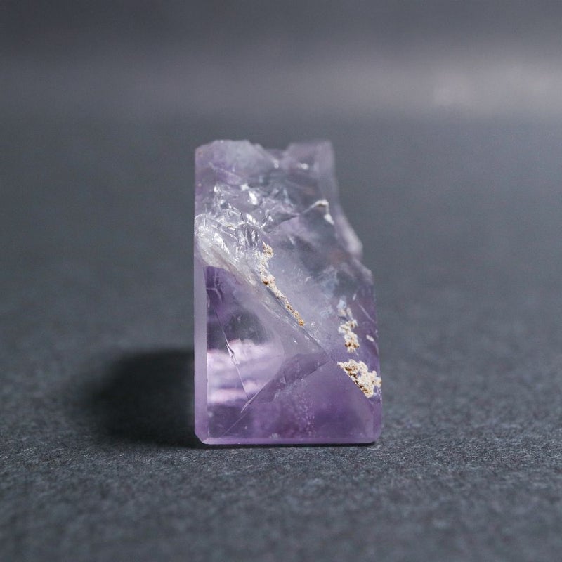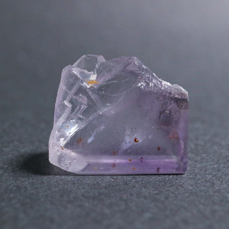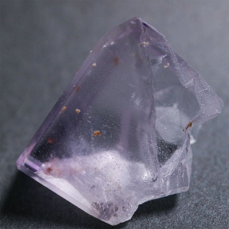特定方向に割れやすい性質「劈開(へきかい)」がはっきりしていて、上手く割ると八面体になります。
