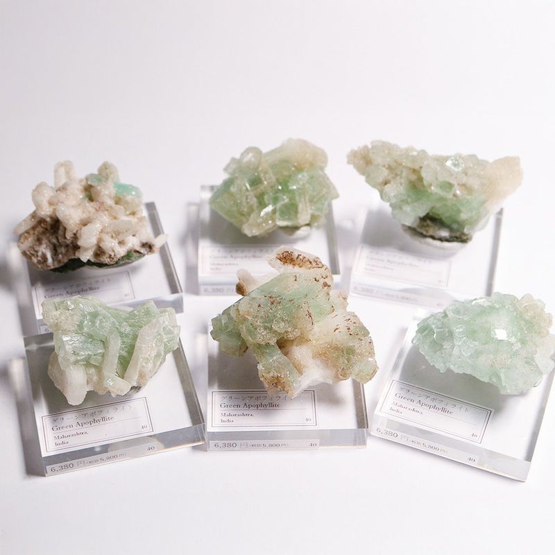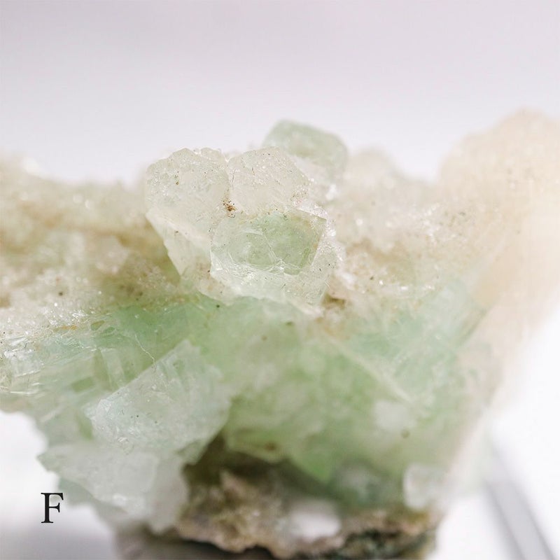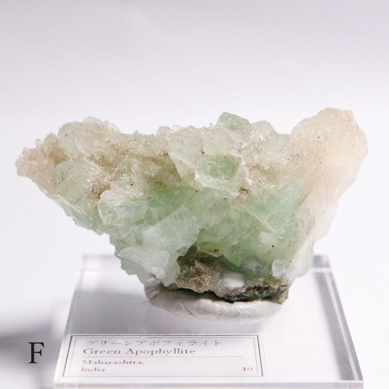 本品はアポフィライトの中でも緑色の結晶を持つグリーンアポフィライトです。
