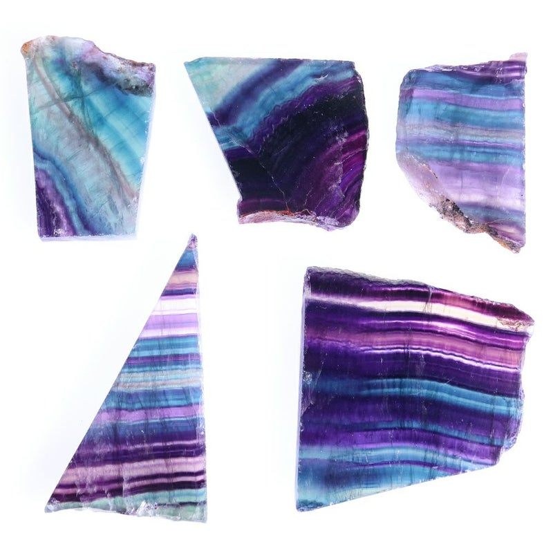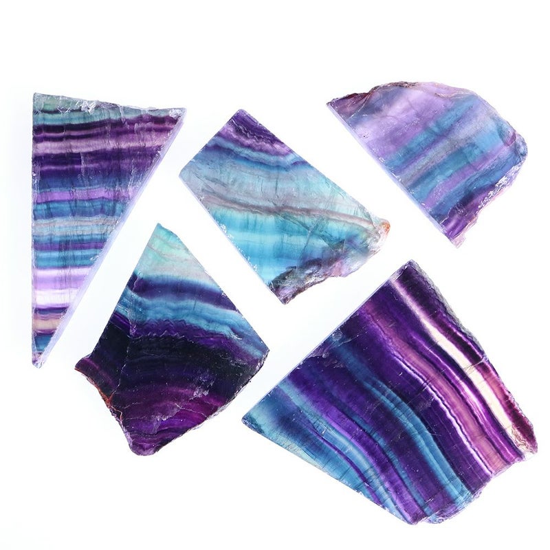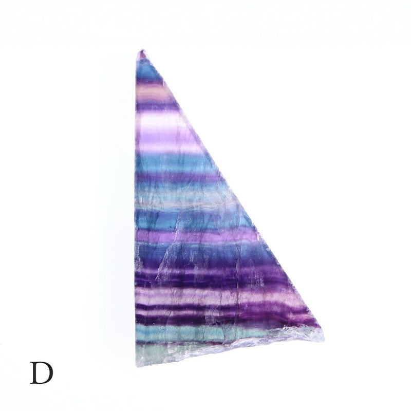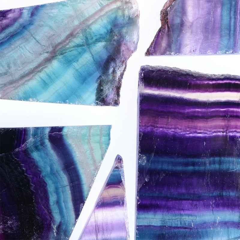 この蛍石プレートは、ひとつの石に複数の色が存在する蛍石をプレート状に切り出したもの。
