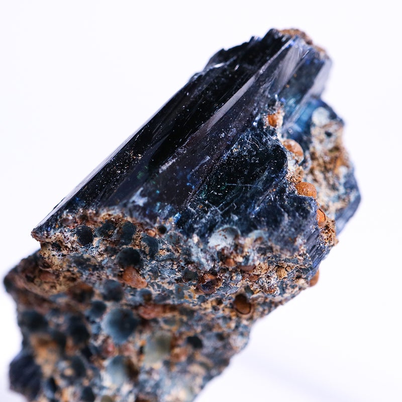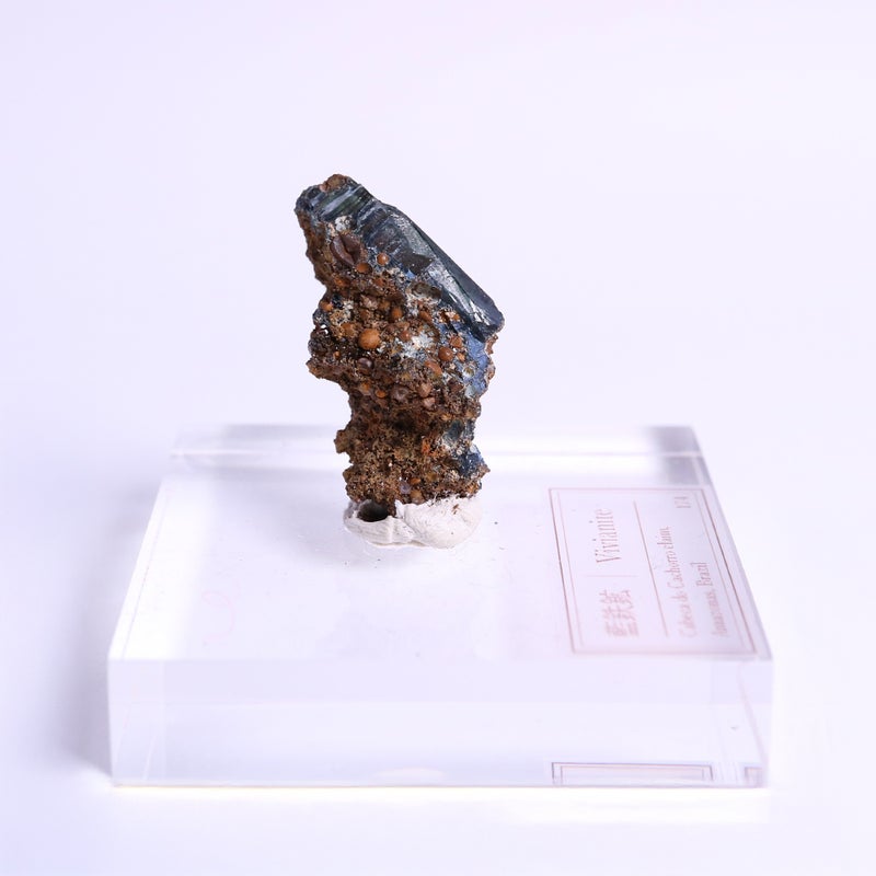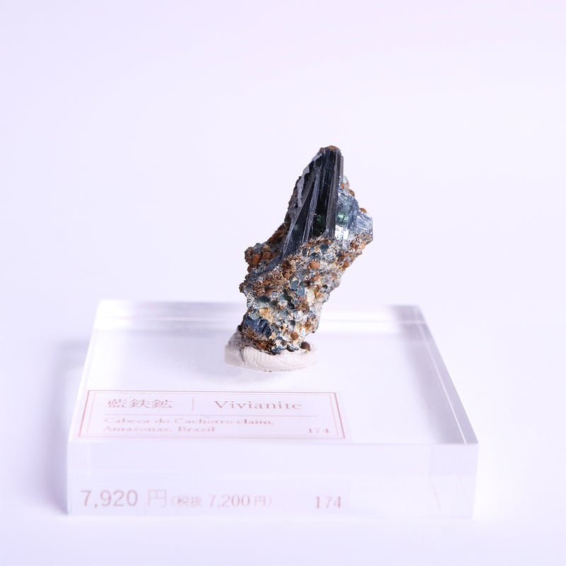 地中では無色透明な結晶ですが、地上の空気に触れることで紺や緑青色に変化する不思議な鉱物です。