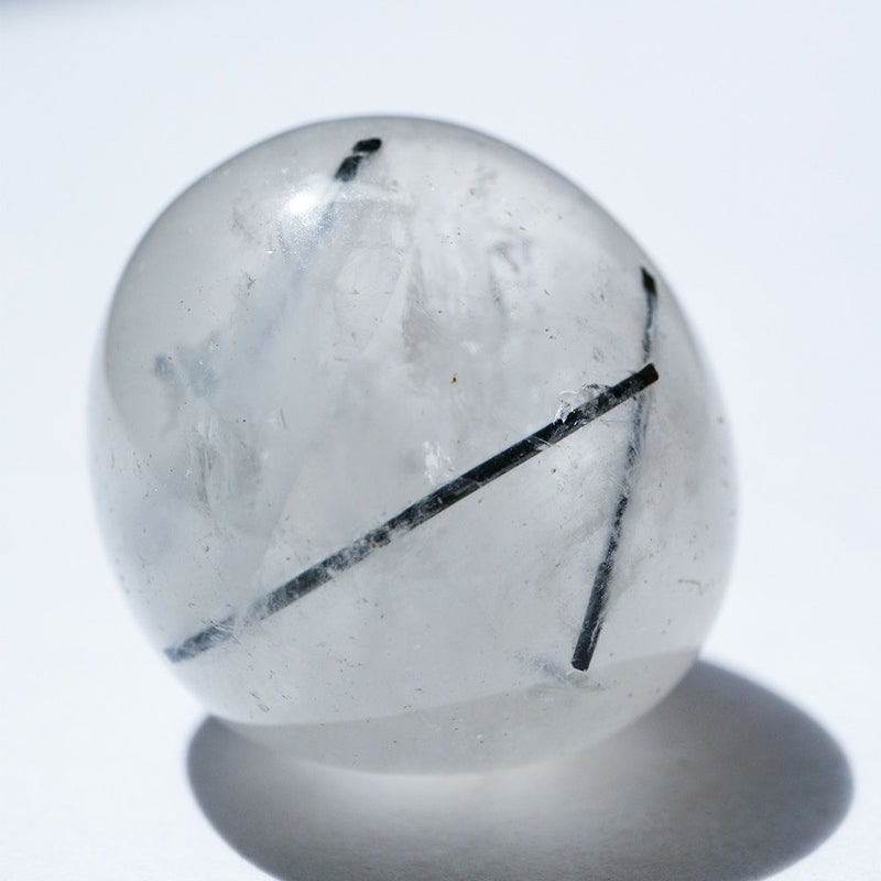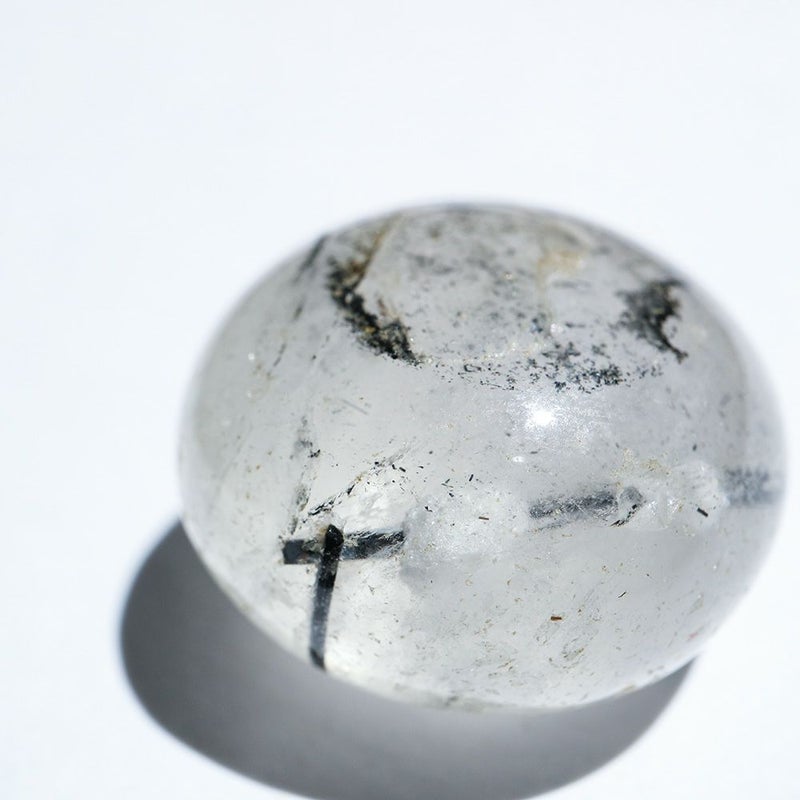 内に柱状のブラックトルマリンが閉じ込められたクォーツ(水晶)。