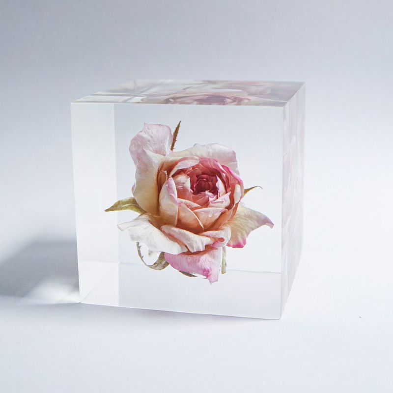 琵琶湖のほとりにある農園で 心を込めて大切に育てられた一輪を、7cm角のキューブに封入しています。