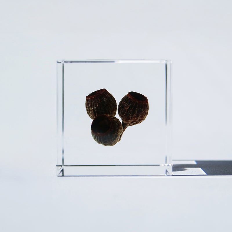 宙言葉:気持ちに火をつける ユーカリの仲間は700種以上あり、そのほとんどはオーストラリア原産です。葉に油を多く含み、乾燥地では山火事の一因になります。そのため、皮肉混じりで「ガソリンツリー」と呼ばれています。 ■素材 アクリル樹脂、乾燥植物 ■サイズ D40mm × W40mm × H40mm ■重さ 74グラム ■ご注意点 ・Sola cube は1つ1つ職人が手作りしています。封入されている植物の大きさ、色、形はすべて異なります。 ・製造の工程上、内部に微細な気泡やチリ状のものが発生することがありますが、商品の不良ではありません。 ・温度の高い場所に長時間置くと、変形したり細かいクラック(ひび割れ)が入ることがあります。炎天下などの高温を避けてご使用ください。 ・シンナーやアルコールなどの溶液や薬品に触れると細かいクラック(ひび割れ)が入ることがあります。お手入れの際は柔らかい布で拭いてください。