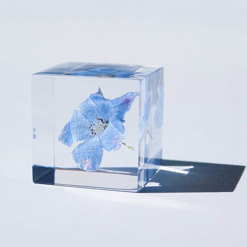 冷涼で乾燥した環境に自生する植物。 属名の「Delphinium」はギリシャ語の「Delphis(イルカ)」が由来となっており、蕾がイルカのように見えることに因んでいます。 ■素材 ポリエステル樹脂、乾燥植物 ■サイズ D40mm × W40mm × H40mm ■重さ 74グラム ■ご注意点 ・本製品はポリエステル樹脂製のため、特に紫外線の当たらない環境でも経年に伴い黄色く変色する場合がございます。なお、紫外線には強く反応し、早期変色の原因となるため直射日光の当たる場所に置くことはお避けください。 ・また、アクリルの製品と比べて内部に微細なチリや気泡が入りやすくなっておりますが、弊社では良品として取り扱っております。 ・Sola cube は1つ1つ職人が手作りしています。封入されている植物の大きさ、色、形はすべて異なります。 ・温度の高い場所に長時間置くと、変形したり細かいクラック(ひび割れ)が入ることがあります。炎天下などの高温を避けてご使用ください。 ・シンナーやアルコールなどの溶液や薬品に触れると細かいクラック(ひび割れ)が入ることがあります。お手入れの際は柔らかい布で拭いてください。