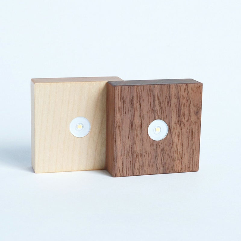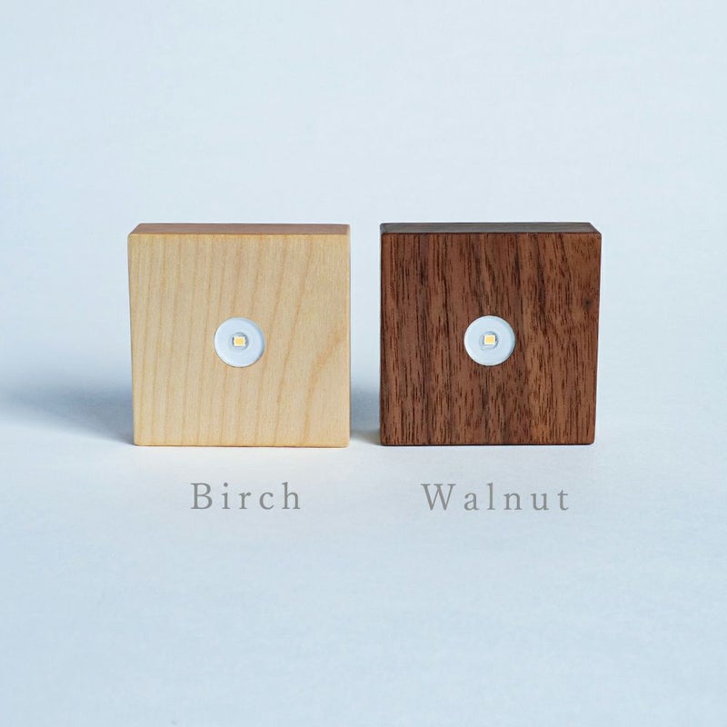 照明ブランド「twodo」によるLight Baseは、上に乗せたものに光を宿す「光源」です。 お気に入りの素材を上に乗せてスイッチを押すだけで、手軽に照明として楽しめます。 明るいときも無垢材を使用したシンプルな本体デザインなので、さまざまなお部屋に馴染んでくれます。 コードレスですので、演出したい空間の環境に関係なく置くことができます。 LEDを使用しており温度変化がないので、植物や花器などを乗せてもお使いいただけます。 Sola cubeシリーズとの組み合わせがおすすめです。 素材そのものの色をお楽しみいただけるように、太陽光に近い色温度5000Kのものと、 ゆったりした空間にぴったりな、暖かい色味の3000Kのものをご用意いたしました。 ささやかに夜を彩るアクセントとして、テーブルの上や玄関先、廊下、寝室などでお楽しみください。 ■仕様 ・ボタン 弱→強→ゆらぎ点灯→消灯(8時間で自動消灯) ・サイズ D65mm x W65mm × H20mm ・素材 オイル仕上げ天然木(ビーチ/ウォルナット) ABS・アクリル ・光源 LED(色温度:5000K、3000K) ・電源 内蔵単3形充電電池 x 2本(市販の単3電池に交換可能) ・電池寿命 1回の充電につき 弱点灯:約150時間 強点灯:約40時間 ゆらぎ点灯:約70時間 内蔵電池の充電可能回数 2100回 ・重さ 約110g (内蔵充電電池含む) ・付属品 ユーザーガイド (充電用のType-Cケーブルは付属しません) ■ご注意点 ・無垢の天然木を使用しているため、木目や色合いには個体差があります。 ・付属の電池以外の電池を使用した場合は、Light Base本体で充電することはできません。 ・充電用のUSBケーブルは付属しません。市販のType-Cのものをお使いいただけます。