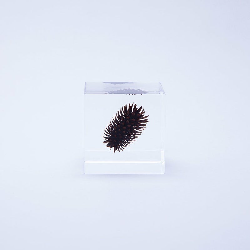宙言葉:鋭い切れ味 クルミ科ではありますが、オニグルミのように食べられる種子は持っていません。 鋭い鱗片が開いた、その形状から、「キツネのカミスキ」、「サルのクシ」などとも呼ばれます。 トゲトゲの松かさの間に種子ができ、風に乗って遠くへ飛ばします。 ■素材 アクリル樹脂、乾燥植物 ■サイズ D40mm × W40mm × H40mm ■重さ 74グラム ■ご注意点 ・Sola cube は1つ1つ職人が手作りしています。封入されている植物の大きさ、色、形はすべて異なります。 ・製造の工程上、内部に微細な気泡やチリ状のものが発生することがありますが、商品の不良ではありません。 ・温度の高い場所に長時間置くと、変形したり細かいクラック(ひび割れ)が入ることがあります。炎天下などの高温を避けてご使用ください。 ・シンナーやアルコールなどの溶液や薬品に触れると細かいクラック(ひび割れ)が入ることがあります。お手入れの際は柔らかい布で拭いてください。