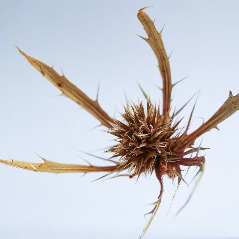球状に集まった花が動物に食べられてしまわないように、萼(がく)や葉にあるトゲがその身を守っているとされています。
