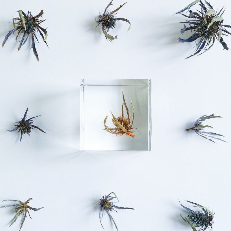 監修:公益財団法人高知県牧野記念財団 ■素材 アクリル樹脂、乾燥植物 ■サイズ D40mm × W40mm × H40mm ■重さ 74グラム ■ご注意点 ・Sola cube は1つ1つ職人が手作りしています。封入されている植物の大きさ、色、形はすべて異なります。 ・製造の工程上、内部に微細な気泡やチリ状のものが発生することがありますが、商品の不良ではありません。 ・温度の高い場所に長時間置くと、変形したり細かいクラック(ひび割れ)が入ることがあります。炎天下などの高温を避けてご使用ください。 ・シンナーやアルコールなどの溶液や薬品に触れると細かいクラック(ひび割れ)が入ることがあります。お手入れの際は柔らかい布で拭いてください。