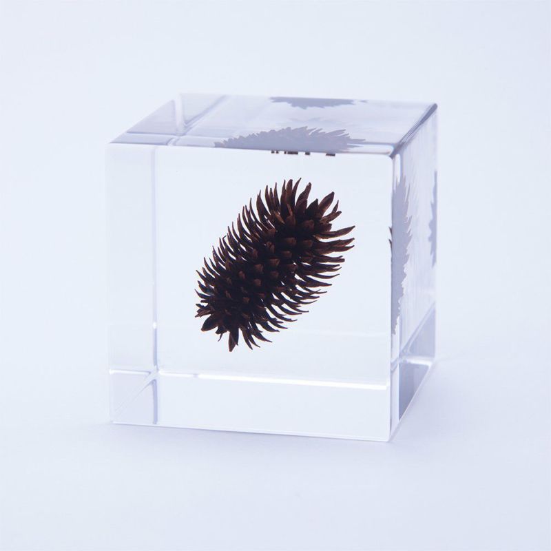 宙言葉:鋭い切れ味 クルミ科ではありますが、オニグルミのように食べられる種子は持っていません。 鋭い鱗片が開いた、その形状から、「キツネのカミスキ」、「サルのクシ」などとも呼ばれます。 トゲトゲの松かさの間に種子ができ、風に乗って遠くへ飛ばします。 ■素材 アクリル樹脂、乾燥植物 ■サイズ D40mm × W40mm × H40mm ■重さ 74グラム ■ご注意点 ・Sola cube は1つ1つ職人が手作りしています。封入されている植物の大きさ、色、形はすべて異なります。 ・製造の工程上、内部に微細な気泡やチリ状のものが発生することがありますが、商品の不良ではありません。 ・温度の高い場所に長時間置くと、変形したり細かいクラック(ひび割れ)が入ることがあります。炎天下などの高温を避けてご使用ください。 ・シンナーやアルコールなどの溶液や薬品に触れると細かいクラック(ひび割れ)が入ることがあります。お手入れの際は柔らかい布で拭いてください。