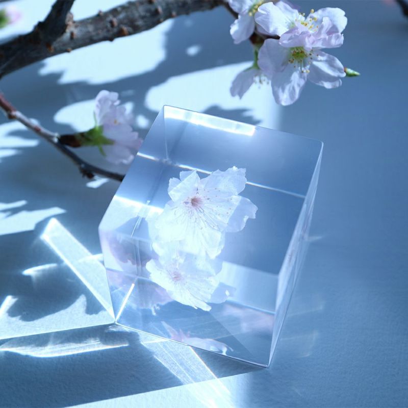 埼玉県川口市安行の田中一郎宅にあった桜が広まったのが始まり。 そのため、別名「安行寒桜」とも呼ばれます。 普通のカンザクラより大輪なのが特徴で、ソメイヨシノより1週間程早く咲く美しい桜です。 ■素材 ポリエステル樹脂、乾燥植物 ■サイズ D40mm × W40mm × H40mm ■重さ 74グラム ■ご注意点 ・カートに入れた状態では在庫が確保されておりません。決済終了時点での在庫確保となります。 ・本製品はポリエステル樹脂製のため、特に紫外線の当たらない環境でも経年に伴い黄色く変色する場合がございます。なお、紫外線には強く反応し、早期変色の原因となるため直射日光の当たる場所に置くことはお避けください。 ・また、アクリルの製品と比べて内部に微細なチリや気泡が入りやすくなっておりますが、弊社では良品として取り扱っております。 ・Sola cube は1つ1つ職人が手作りしています。封入されている植物の大きさ、色、形はすべて異なります。 ・温度の高い場所に長時間置くと、変形したり細かいクラック(ひび割れ)が入ることがあります。炎天下などの高温を避けてご使用ください。 ・シンナーやアルコールなどの溶液や薬品に触れると細かいクラック(ひび割れ)が入ることがあります。お手入れの際は柔らかい布で拭いてください。