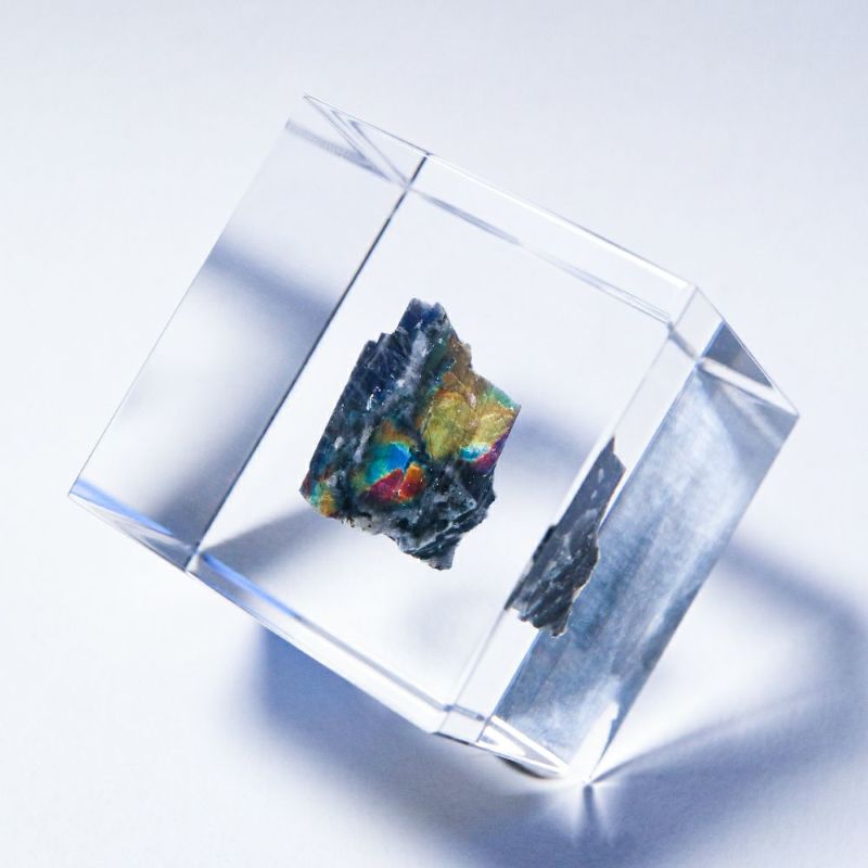 あまたある鉱物の中からウサギノネドコが厳選した標本を、4cm・5cmのキューブに封入しています。
