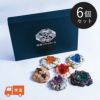 キラキラと輝く鉱物結晶をのせたロックケーキ。 蛍石・燐灰石(りんかいせき)・天藍石(てんらんせき)・柘榴石(ざくろいし)・紫水晶・バナジン鉛鉱(ばなじんえんこう)の6種類がモチーフになっています。 ロックケーキとは、その名の通りごつごつとした見た目がまるで石のようなイギリス発祥の焼き菓子。 外はサクッと、中はしっとり、スコーンによく似た食感です。 キラキラとした鉱物結晶は、宝石のようなゼリー菓子「パート・ド・フリュイ(Pâtes de fruits)」で作られています。 パート・ド・フリュイとは、フランスのパティスリーやショコラティエではお馴染みの高級フルーツゼリーで、本場では箱や瓶に詰めて店頭に並ぶお菓子です。 6種類の見た目はもちろん、味も全て異なります。 ご自分用としてだけでなく、手土産や遠くに住む大切な人へのギフトにもぴったりなスイーツです。 常温便でのお届けとなりますので、標本プロダクツとの同梱も可能です。 ■ 6種類の味について [ 蛍石 ] 爽やかなミント味のパート・ド・フリュイが輝く蛍石。 ブラックココアをベースに、濃厚なチョコレートやバナナがゴロゴロと入った贅沢な一品です。 チョコミントのような風味の中に、バナナのフレッシュな甘味が広がります。 [ 燐灰石 ] リンゴ味のパート・ド・フリュイと紅茶が香るロックケーキは、一緒に食べるとアップルティーのような味わいに。 紅茶の華やかなフレーバーの中にナッツの香ばしい風味が感じられます。 軽やかなくるみの食感が食べていて楽しいロックケーキです。 [ バナジン鉛鉱 ] ほんのり塩の効いたココナッツ風味の生地に、オレンジと赤ワインの酸味のあるパートドフリュイが合わさった、少し大人の味わい。 カリッとしたザラメがアクセントになった、食感まで楽しめるロックケーキです。 [ 天藍石 ] この美しい青色はオレンジ風味のリキュール「ブルーキュラソー」によるものです。 ロックケーキにはオレンジピールが混ぜ込まれており、さわやかで深みのある味わいを感じられます。 お味と共に、青い結晶とロックケーキの美しいコントラストをお楽しみください。 [ 柘榴石 ] 芳醇な黒ゴマのロックケーキと、果肉をかじっているかのようなマンゴーの味わいが広がる一品。 和と洋の組み合わせが新しく、飽きのこないケーキです。 [ 紫水晶 ] 紫水晶をイメージしたパート・ド・フリュイには花のリキュール「パルフェタムール」を使用。すみれやバラの華やかさと、バニラのような柔らかな甘みを感じる一品です。 ロックケーキにはアーモンドダイスとレモンが入っており、噛むたびにナッツの香ばしさとレモンの爽やかさが口いっぱいに広がります。 ■ お届け日について [お届け日]からお届け希望日を選択してください。 配送先や運送状況により、ご希望のお届け日以内にお届けできない場合がございますあらかじめご了承ください。