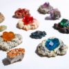 キラキラと輝く鉱物結晶をのせたロックケーキ。 蛍石・燐灰石(りんかいせき)・天藍石(てんらんせき)・柘榴石(ざくろいし)・紫水晶・バナジン鉛鉱(ばなじんえんこう)の6種類がモチーフになっています。 ロックケーキとは、その名の通りごつごつとした見た目がまるで石のようなイギリス発祥の焼き菓子。 外はサクッと、中はしっとり、スコーンによく似た食感です。 キラキラとした鉱物結晶は、宝石のようなゼリー菓子「パート・ド・フリュイ(Pâtes de fruits)」で作られています。 パート・ド・フリュイとは、フランスのパティスリーやショコラティエではお馴染みの高級フルーツゼリーで、本場では箱や瓶に詰めて店頭に並ぶお菓子です。 6種類の見た目はもちろん、味も全て異なります。 ご自分用としてだけでなく、手土産や遠くに住む大切な人へのギフトにもぴったりなスイーツです。 常温便でのお届けとなりますので、標本プロダクツとの同梱も可能です。 ■ 6種類の味について [ 蛍石 ] 爽やかなミント味のパート・ド・フリュイが輝く蛍石。 ブラックココアをベースに、濃厚なチョコレートやバナナがゴロゴロと入った贅沢な一品です。 チョコミントのような風味の中に、バナナのフレッシュな甘味が広がります。 [ 燐灰石 ] リンゴ味のパート・ド・フリュイと紅茶が香るロックケーキは、一緒に食べるとアップルティーのような味わいに。 紅茶の華やかなフレーバーの中にナッツの香ばしい風味が感じられます。 軽やかなくるみの食感が食べていて楽しいロックケーキです。 [ バナジン鉛鉱 ] ほんのり塩の効いたココナッツ風味の生地に、オレンジと赤ワインの酸味のあるパートドフリュイが合わさった、少し大人の味わい。 カリッとしたザラメがアクセントになった、食感まで楽しめるロックケーキです。 [ 天藍石 ] この美しい青色はオレンジ風味のリキュール「ブルーキュラソー」によるものです。 ロックケーキにはオレンジピールが混ぜ込まれており、さわやかで深みのある味わいを感じられます。 お味と共に、青い結晶とロックケーキの美しいコントラストをお楽しみください。 [ 柘榴石 ] 芳醇な黒ゴマのロックケーキと、果肉をかじっているかのようなマンゴーの味わいが広がる一品。 和と洋の組み合わせが新しく、飽きのこないケーキです。 [ 紫水晶 ] 紫水晶をイメージしたパート・ド・フリュイには花のリキュール「パルフェタムール」を使用。すみれやバラの華やかさと、バニラのような柔らかな甘みを感じる一品です。 ロックケーキにはアーモンドダイスとレモンが入っており、噛むたびにナッツの香ばしさとレモンの爽やかさが口いっぱいに広がります。 ■ お届け日について [お届け日]からお届け希望日を選択してください。 配送先や運送状況により、ご希望のお届け日以内にお届けできない場合がございますあらかじめご了承ください。