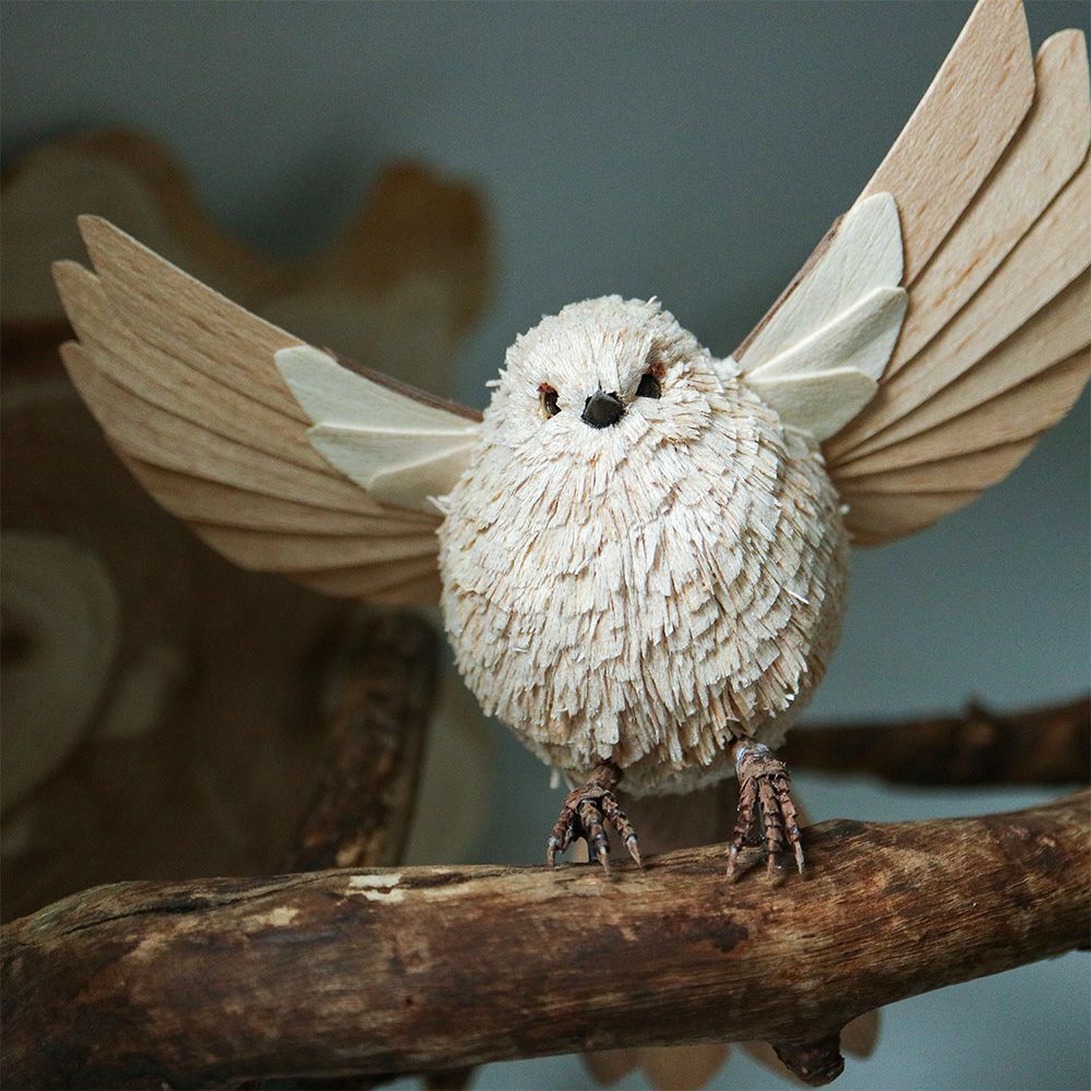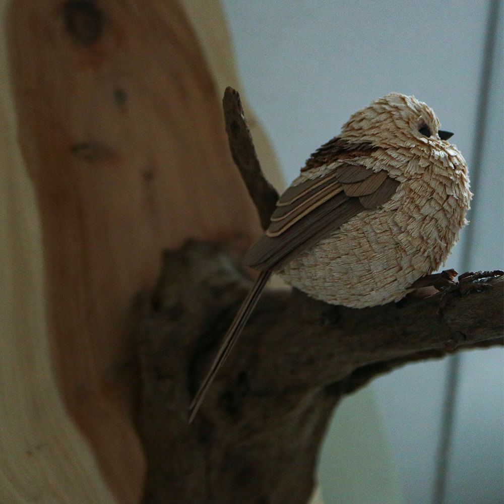 【ぽっぽの木彫り屋さん】木製シマエナガ「ただいま」