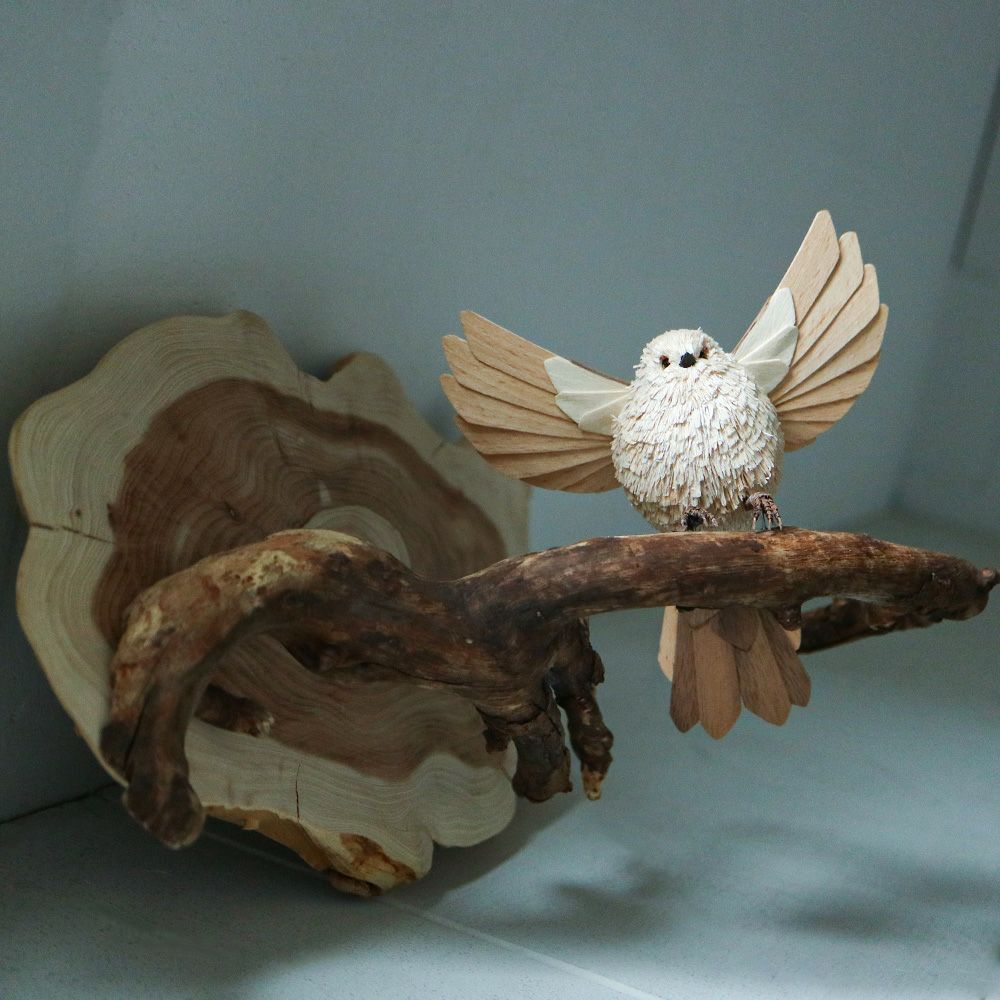 【ぽっぽの木彫り屋さん】木製白文鳥